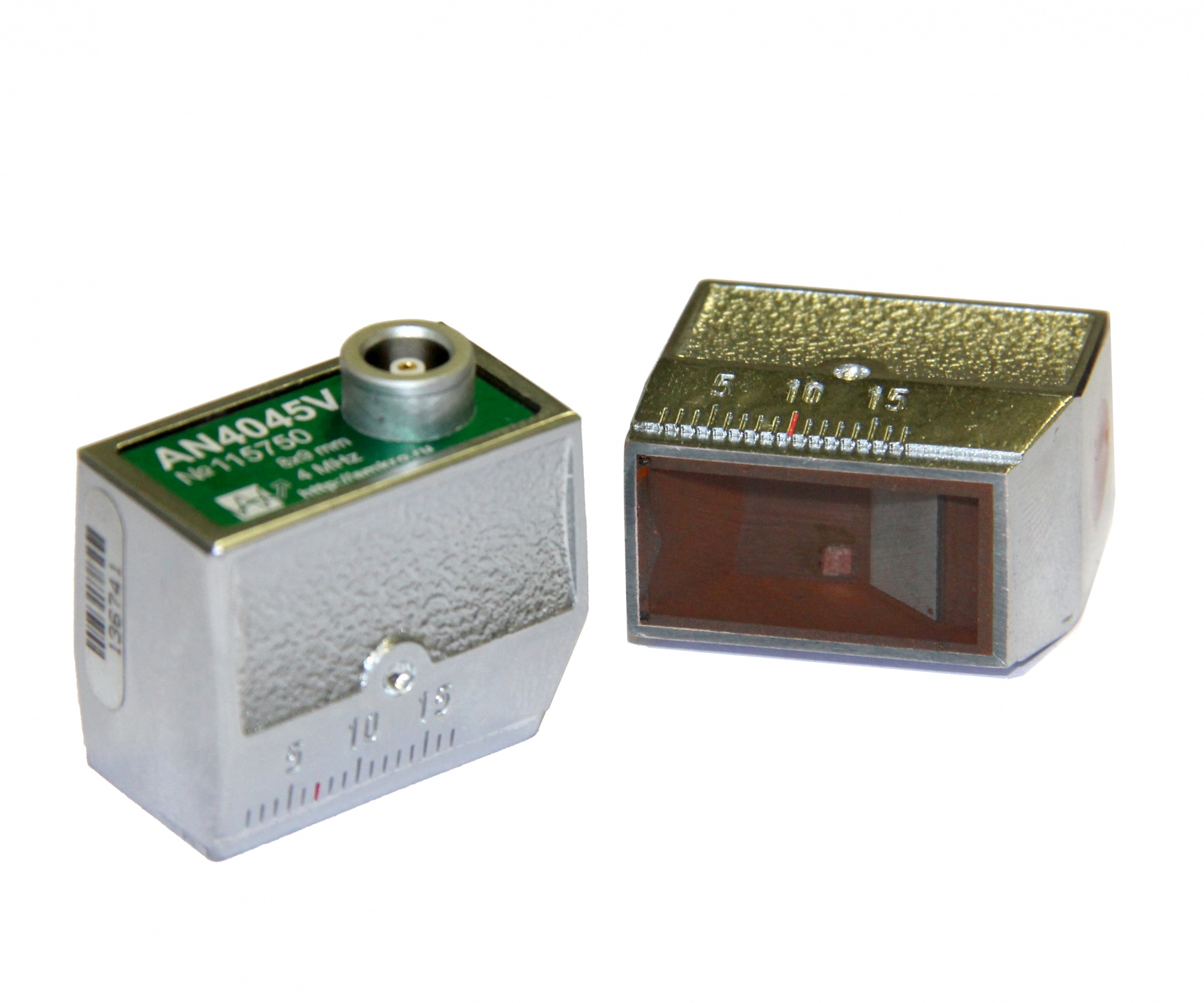 Преобразователь совмещенный наклонный поперечных волн частотой 4МГц с верхним выводом разъема подключения.